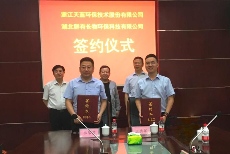 2019年6月20日,浙江天藍環保技術股份有限公司(以下簡稱“天藍環保”或“我司”)和湖北群有長物環保科技有限公司(以下簡稱“湖北群有”)戰略合作簽約暨天藍環保催化劑生產制造基地揭牌儀式在湖北省仙桃市瀏口工業園隆重舉行。湖北群有吳道君創始人、李軍營總經理,我司吳忠標創始人、王岳軍總工程師等領導參加儀式,標志著我司和湖北群有戰略合作翻開嶄新篇章。