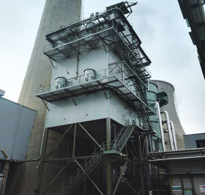 濟寧金威熱電有限公司2×130t/h鍋爐濕電工程,釆用塔外臥式金屬板式濕電,配置堿液掛膜沖洗水系統(tǒng)。